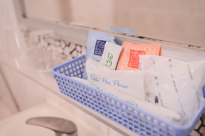 浴室備品:牙刷牙膏、刮鬍刀、浴帽、洗髮精、沐浴乳、洗面乳、浴巾。